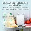 • ASSORBI ODORI FRIGORIFERO. Oltre a ridurre gli odori sgradevoli fino all'80%, offre tre modalità operative: Eco, Standard, Boost. Compatto e facile da installare, questo dispositivo è ideale per chiunque voglia migliorare l'efficienza del proprio frigorifero. Con Shelfy, il tuo cibo rimarrà fresco più a lungo, e il tuo frigorifero sarà libero da odori sgraditi e batteri nocivi.